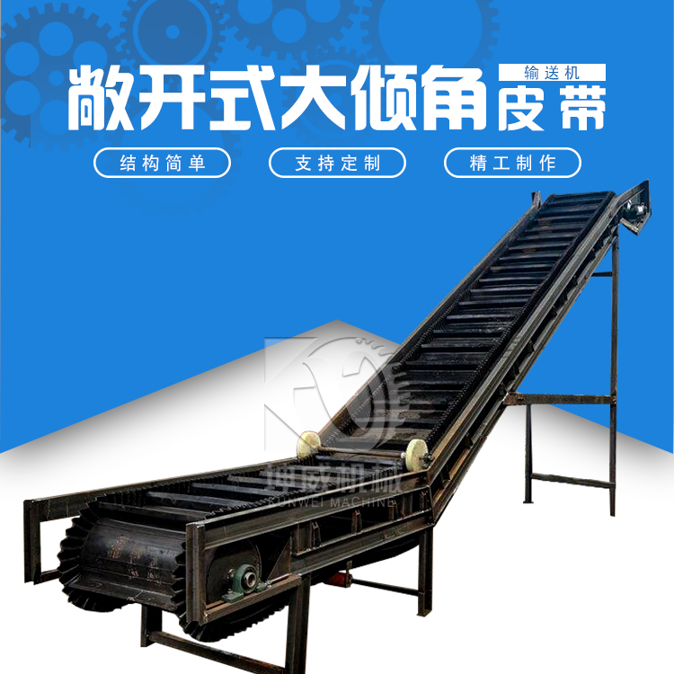 1、大傾角輸送機的輸送帶采用波形擋邊和橫隔板,有效地減少了物料輸送過程中散落的問題,大幅度提高了物料輸送效率。